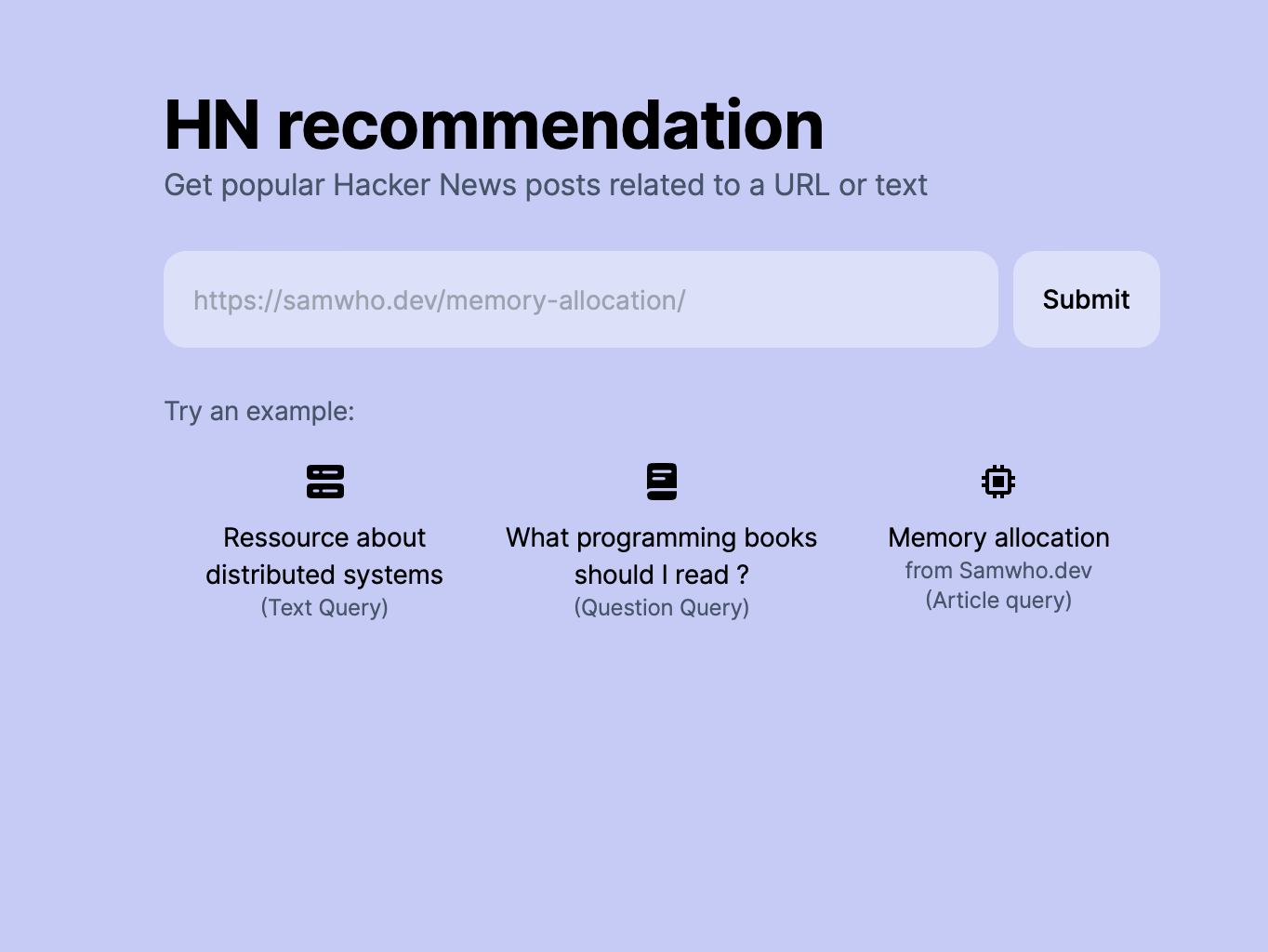 To me, Hacker News looks like a goldmine of awesome articles and learning resources. But I feel like I can’t access it properly. I can’t replay sixteen years (from 2007) of posts and HN Algolia only matches words. To resolve this issue, I made HN Recommend.