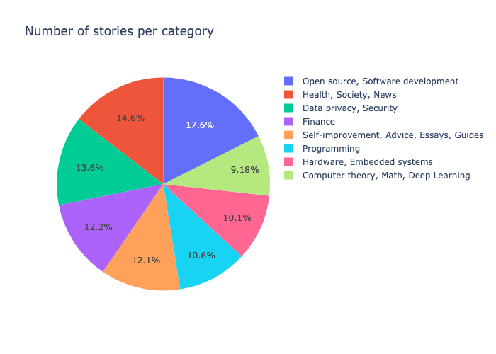 While in the previous chart, there were the more stories on « Open source, Software development », « Data privacy, Security » is a much more popular topics.